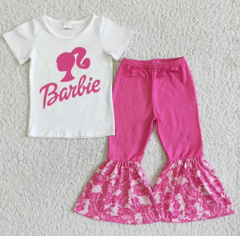 This Girls Pants Set is crafted with 95% cotton and 5% spandex for maximum comfort and breathability. Maintenance is easy: machine wash and air or machine dry low for optimal care. Features a stylish white shirt and pink lace print bells bottom pants, perfect for your little fashionista.