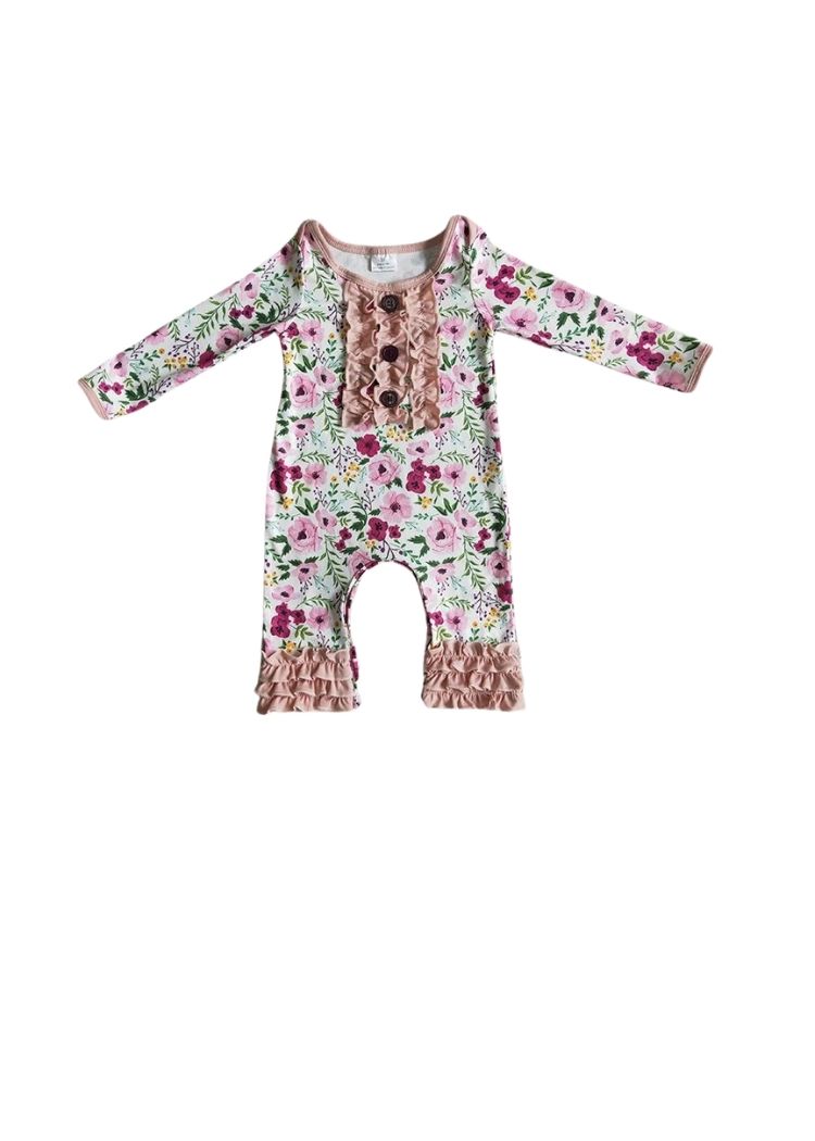 Awaken the inner fashionista in your little girl with this Pink Floral Print Cute Romper. Made with a comfortable blend of 95% cotton and 5% spandex, it's perfect for her play time activities. This romper features beautiful icing ruffles on the leggings, adding a fun and stylish touch to her wardrobe. For best care, hand wash and air dry is recommended. Give your daughter the perfect outfit for exploring and playing in style with this irresistible floral romper!