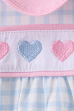 Adorable gingham pants set featuring charming blue heart embroidery details. Perfect for little ones who love sweet, coordinated looks. The classic gingham pattern pairs beautifully with delicate embroidered hearts for a playful, timeless style. Soft and comfortable for everyday wear, this set brings together fun fashion and quality craftsmanship. Ideal for playdates, casual outings, or creating those picture-perfect moments.