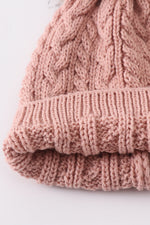 Dust rose cable knit pom pom beanie hat baby toddler adult