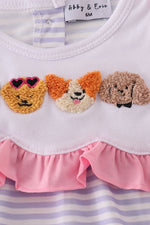 Dress your little one in the adorable Purple Puppy French Knot Stripe Bloomer Set, perfect for playful days and cozy comfort. Featuring charming purple stripes and cute puppy accents, this set combines style with soft, breathable fabric to keep your child happy and comfy all day long. Ideal for sunny adventures or relaxed playtime, it’s a delightful addition to any toddler’s wardrobe.