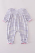 Purple puppy french knot stripe romper