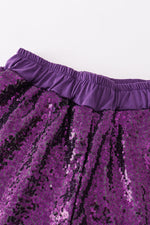 Get ready to party in style with these eye-catching Purple Sequin Mardi Gras Mom&Me Skorts! Covered in shimmering sequins, these skorts will make you stand out in the crowd. The perfect combination of fun and fashion, these skorts are a must-have for any celebration.