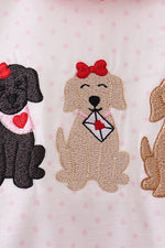 Adorable white bubble romper featuring an adorable puppy embroidery design on the chest. Charming ruffled details frame the neckline and sleeves, adding extra sweetness to this cozy piece. Perfect for playdates, family photos, or everyday cuddles. Soft, comfortable fabric keeps little ones happy all day long. A delightful choice for puppy lovers of all ages!