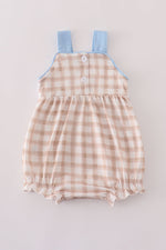 This adorable beige gingham bubble romper features a charming puppy embroidery that adds a playful touch to your little one’s outfit. Soft and comfortable, it’s perfect for everyday adventures and keeps your baby looking cute and cozy all day long.