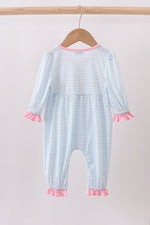 This blue romper features a fun animal print with charming smocked detailing and playful ruffle accents. Perfect for sunny days and outdoor adventures, its lightweight fabric ensures comfort while the cute design keeps your little one looking adorable and ready to explore.