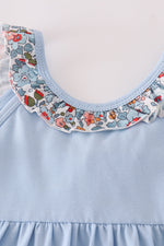 Twirl into sweetness with our Blue Apple Floral Applique Ruffle Dress! This charming piece features delightful apple appliques dancing among floral details, while playful ruffles add bounce to every step. Perfect for parties, picnics, or anytime your little one wants to feel extra special and adorably stylish!
