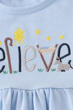 Step into fun and flair with this Blue Believe Embroidery Ruffle Pants Set. The playful embroidery adds charming detail while ruffled accents bring movement and whimsy. Perfect for lively days, this set combines comfort and style, making every moment a chance to express your bright personality.