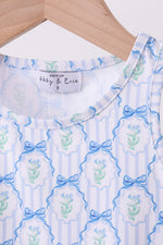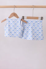 Blue bow floral active skorts set