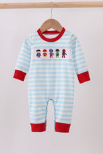 Blue character embroidery stripe romper