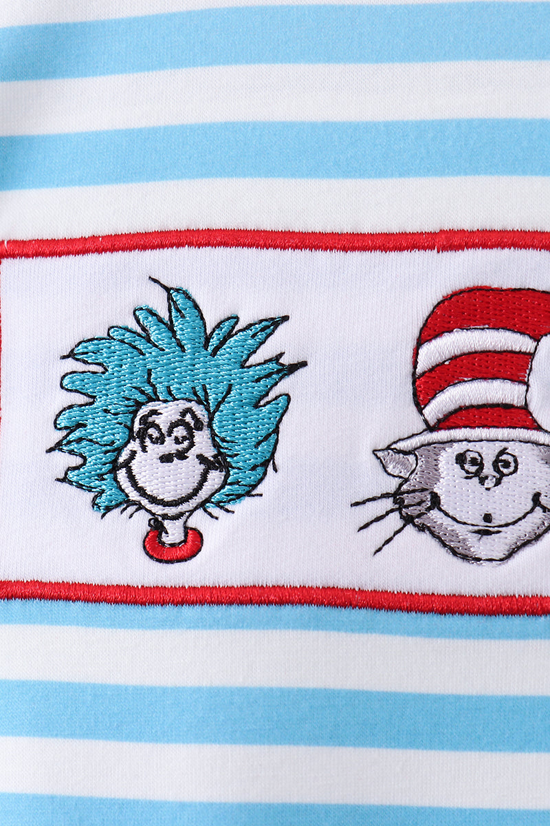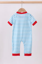 Blue character embroidery stripe romper