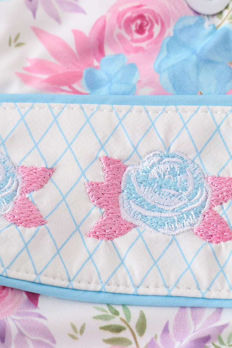 Make a splash with this stunning blue floral embroidery one-piece swimsuit! With its vibrant design and eye-catching details, you'll stand out at the beach or pool. Stay comfortable and stylish all day long in this one-of-a-kind swimsuit. (Swimming has never been so chic!)