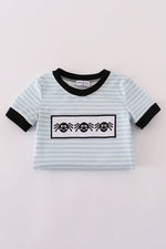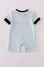 Celebrate Halloween in style with this playful blue romper featuring charming spider embroidery and bold stripes. Perfect for festive fun, its comfortable fit lets little ones move freely while showing off spooky-cute vibes. Ideal for parties or trick-or-treating, this romper adds a touch of whimsy to any Halloween outfit.