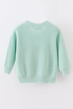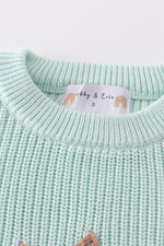 Blue hand-embroidery bunny pullover sweater
