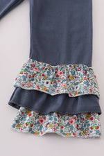 Blue meadow charm lace ruffle pants set