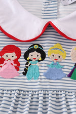 This charming blue princess embroidery stripe pants set brings a playful touch to any wardrobe. Featuring delicate embroidery and stylish stripes, it combines comfort with a fun, whimsical look perfect for lively days and special moments. Easy to mix and match, this set adds a splash of joy to your outfit rotation.