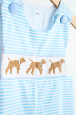 Blue puppy hand smocked boy stripe jonjon