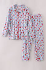 Bring festive cheer and cozy comfort to your holidays with this playful Blue Santa Claus bamboo dad pajamas set. Made from soft, breathable bamboo fabric, it keeps dads comfy while spreading joyful vibes with its fun Santa design. Perfect for lounging or family photos, this set adds a whimsical touch to bedtime festivities.
