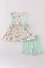 Blue seashell bow ruffle shorts set