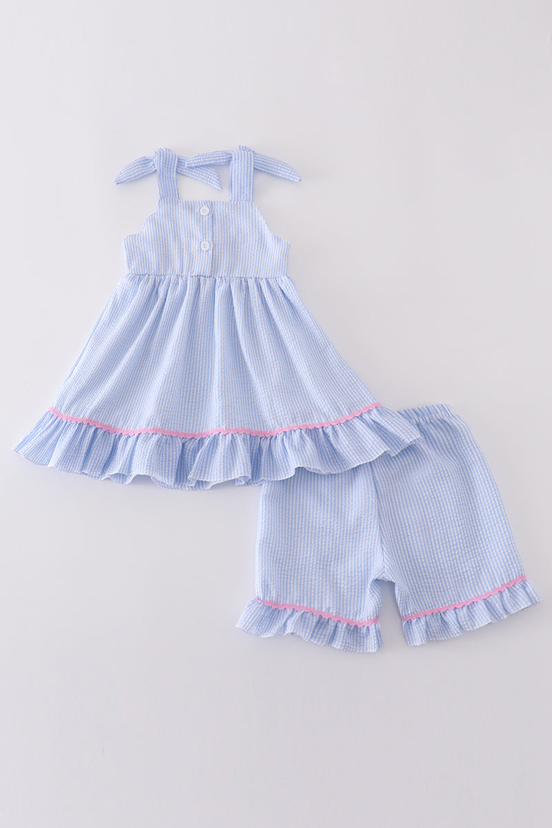 Blue seersucker whale embroidery set