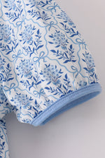 Blue toile garden bow mom tiered dress