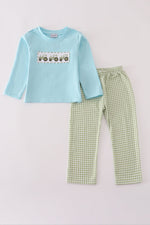 Blue tractor embroidery pants set