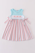 Blue whale embroidery girl dress