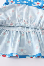 Add a pop of whimsy to your wardrobe with our Blue & White Floral Print Ruffle Dress. This charming dress features a playful combination of blue and white, with delicate ruffles adding a touch of feminine flair. Perfect for any occasion, you'll love the fun and flirty style of this dress!