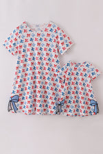 Match your mini in this adorable applique dress, featuring a playful bow print. Perfect for twinning with your little one, this dress is sure to charm and turn heads!