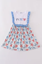 This playful dress features a charming bow trellis print and delicate embroidery, adding a whimsical touch to any look. With its ruffle detailing, it's perfect for a fun and flirty style. So go ahead, make a statement and stand out in this unique and quirky dress!