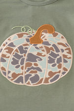 Get ready for cozy fun with this camouflage print pumpkin applique pants set! Perfect for playful days, the soft fabric and festive pumpkin detail add a touch of whimsy to your little one’s wardrobe. Ideal for casual outings or festive fall gatherings, this set combines comfort with cute seasonal style.