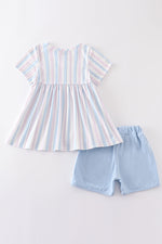 Get beach-ready with our Crab french knot stripe girl set! Adorned with cute crab details and trendy stripes, this set is perfect for your little fashionista. Get her ready for a day of fun in the sun with this quirky and stylish outfit. (Crab french knot and stripes included, sunglasses and sunblock sold separately.)