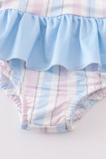 Get ready to crabby crawl in style with our Crab french knot stripe girl swimsuit. Featuring adorable crab designs and a playful french knot stripe pattern, this swimsuit is perfect for your little one. Jump in the water and have some fun with this quirky and unique swimsuit!