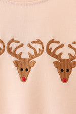 Bring festive cheer to your wardrobe with this cream reindeer embroidery top. Its soft hue highlights charming reindeer designs that add a whimsical touch to any casual look. Comfortable and eye-catching, it’s perfect for spreading holiday joy in style all season long.