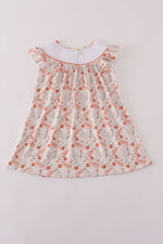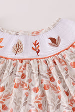 Celebrate autumn’s charm with this playful fall leaves embroidery smocked ruffle dress. Featuring delicate embroidered leaves and a comfortable smocked bodice, it offers a perfect fit with a flirty ruffle hem that dances with every step. Ideal for crisp days and cozy gatherings, this dress brings a touch of seasonal whimsy to your wardrobe.