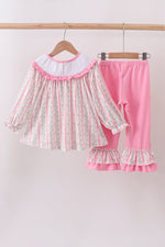Bring a burst of springtime fun to any outfit with this Floral Tulip Smocked Ruffle Pants Set. Featuring cheerful floral patterns and playful tulip-shaped smocking, the set pairs comfy pants with charming ruffles that add a whimsical touch. Perfect for lively days filled with movement and joy, it offers both style and freedom to play.