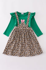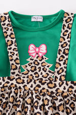 Forest tree applique leopard ruffle skorts set