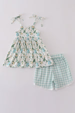 Green floral print set