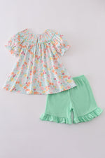 Green springtime bloom smocked girl set
