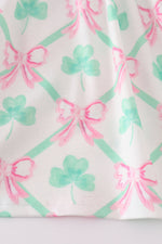 Get ready to shamrock with this playful St.Patrick's Day set for girls! Featuring a fun clover print and vibrant green color, this set is perfect for celebrating the holiday or adding a touch of luck to any day. Don't miss out on this one-of-a-kind set for your little leprechaun!