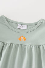Get ready for the holiday season with this adorable green turkey embroidery girl set! Perfect for family dinners and photos, this set features an intricate turkey embroidery design that adds a charming touch. Made with high-quality materials, this set is comfortable for your little one to wear all day long. Gobble up the compliments with this unique and playful outfit!