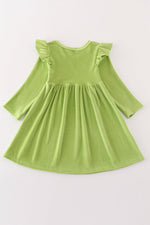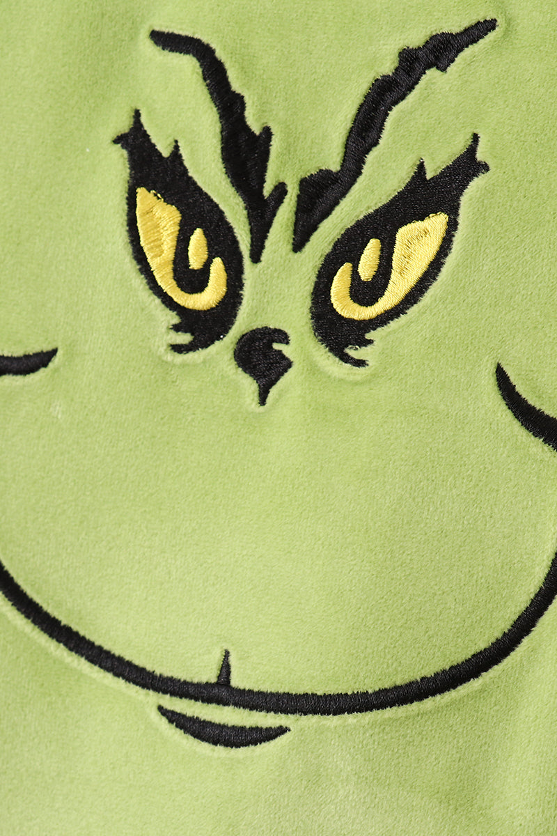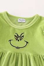 Green velvet christmas charactor embroidery mom&me dress