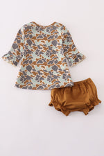 Get your little one ready for spooky fun with this Halloween camouflage applique bloomer set! Featuring playful camo patterns and festive appliques, it’s perfect for trick-or-treating or festive photos. Comfortable and cute, this set adds a fun twist to Halloween style.