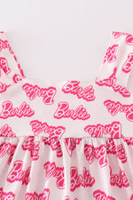 Be the coolest kid in the sandbox with this hot pink barbie print dress. Perfect for dress-up and playtime, this dress will make any little girl feel like a fashion icon. Get ready to strut your stuff on the playground (or catwalk) with this stylish and playful dress.