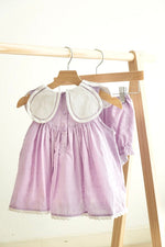 Lavender floral bow embroidery swiss dot girl bloomer set