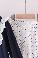Navy nativity embroidery ruffle pants set