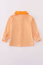 Show your team spirit with this vibrant Orange Tennessee "Go Vols" applique button-down shirt. Featuring bold applique lettering, it’s perfect for game days or casual outings. The comfortable fit and bright color make it easy to cheer on your Volunteers in style and comfort.