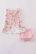 This playful bloomer set combines the fun of a pink baseball print with the classic style of gingham. Perfect for a day at the park or a casual outing, this outfit lets your little one show off their unique and quirky style. Batter up for cuteness overload!
