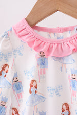 Add a touch of whimsy to any celebration with the Pink Bow Nutcracker Ruffle Bubble. This playful design features charming pink bows paired with delicate ruffles, creating a bubbly, festive look that's perfect for parties or gifting. Bright and cheerful, it brings fun and flair wherever it’s used.