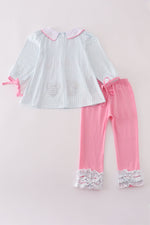 Add a splash of fun to your little one’s wardrobe with this Pink Character Embroidery Ruffle Pants Set. Featuring charming embroidered characters and playful ruffles, this set combines comfort with adorable style. Perfect for playdates or casual outings, it keeps your child looking cute and feeling cozy all day long.